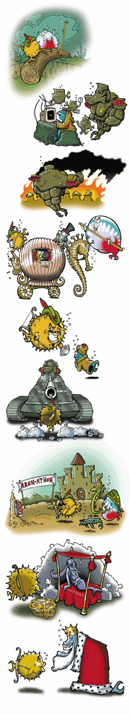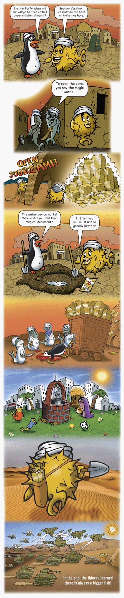 Every 6 months the OpenBSD project has the pleasure to release our software with artwork and a matching song. Theo and some other developers mutate a theme (from a classical setting, a movie, or some genre) into the fishy world of Puffy, to describe some advance, event or controversy the project went through over the previous six months. To match the art released with the historical CD sets, we joined up with some musicians we know to make at least one song.