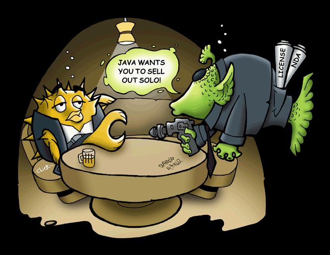 The other character introduced with the 2.8 release. Brother to "Sushi Fugu" on T-shirt 12, this mean dude tells people to stay off your computer.